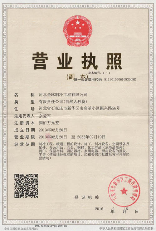 河北圣冰制冷工程有限公司是生產各種組合式,土建式冷庫,以設計、安裝大中小型拼裝式精品保鮮庫、冷藏庫、速凍低溫庫的專業公司,另銷售各種制冷設備。圣冰制冷為果蔬、肉類、水產、種子、花卉、食品、醫藥、電子、生物等眾多企業單位,行業提供了優質、快捷的保鮮、冷藏、冷凍、速凍庫的建造及安裝。我們的宗旨是:服務鑄造品牌誠信編織未來做優質工程,為廣大客戶提供完善的施工方案可靠節能的技術設備,為使用者減少設備運行成本。石家莊圣冰制冷設備安裝有限公司以為眾多行業制做,安裝了近500多座冷庫。一直堅持求新求變的在既得成就的基礎上,不斷發展壯大,匯集世界名牌制冷精品,如:德國比澤爾、法國美優樂、以及美國谷輪和法國泰康等制冷機組。國產制冷機組有:大連三洋、沈陽谷輪、浙江北峰等機組。庫板品種:彩鋼板、復塑板、壓花鋁板、鍍鋅板、不銹鋼板。保溫材料:PU(聚胺脂)、PS(聚苯乙烯)、擠塑板。歡迎來電咨詢。